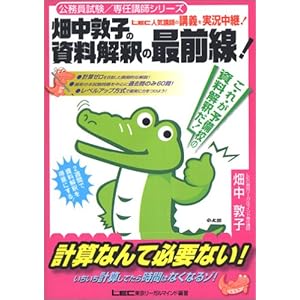 資料解釈 絶対なる!地方上級公務員試験合格への道! ~ 畑中敦子の資料解釈の最前線 公務員試験・専任講師シリーズ 地方初級・国家3種レベルが理解できたら 本試験レベルの問題に挑戦していきます。 資料解釈の場合は文系の人でも いきなりこれをやっても十分理解できると思います。